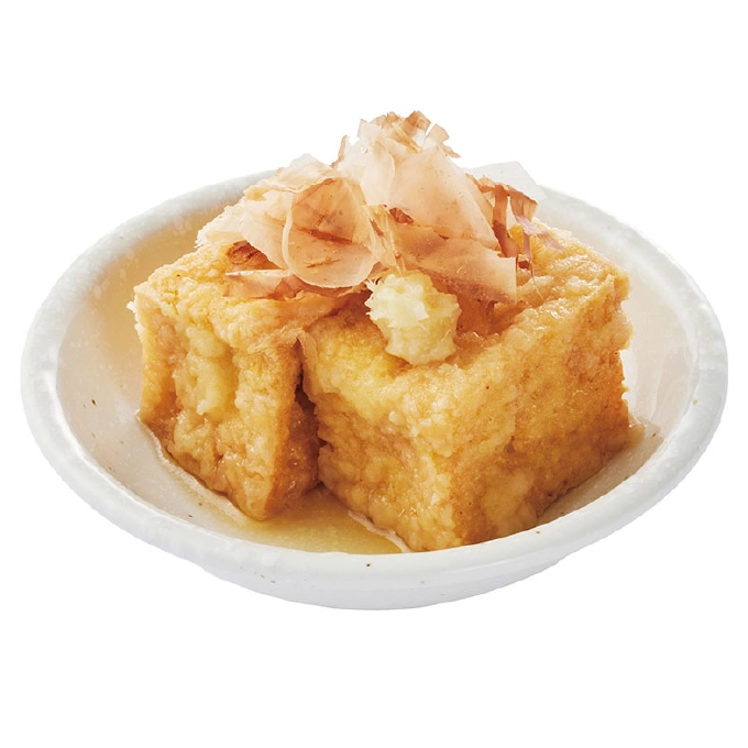 揚げた豆腐を、風味豊かなタレで仕上げた優しい味わいの一品です。200円