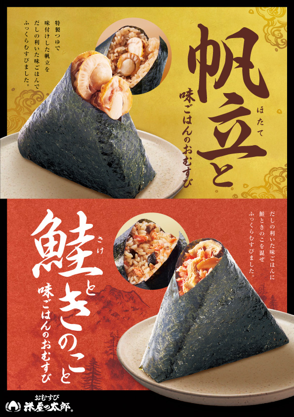 季節限定「帆立と味ごはんのおむすび」、「鮭ときのこと味ごはんのおむすび」販売のお知らせ